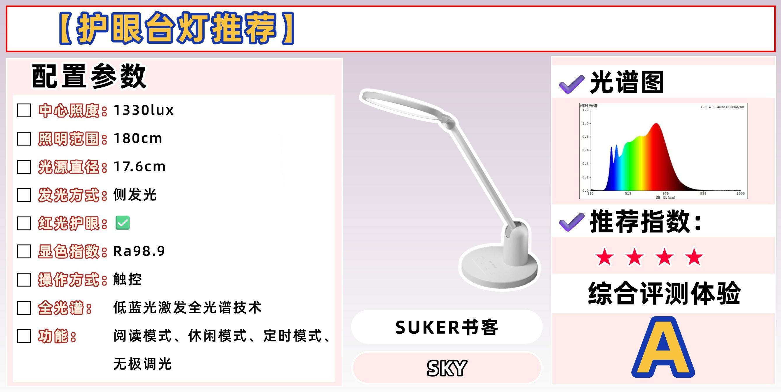 推荐理由:采用直发光发光,光线可覆盖1.2米桌面,满足日常读写需求。