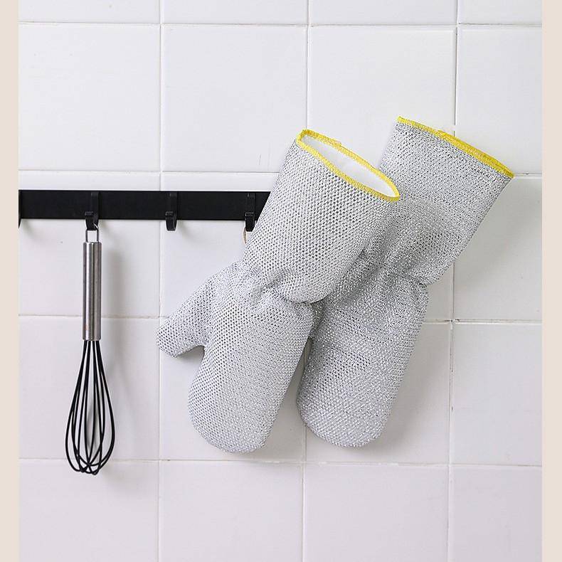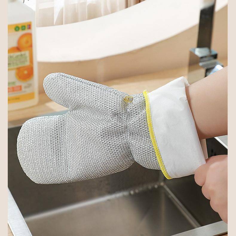 这款钢丝洗碗手套采用创新材质打造,完美解决了厨房清洁中的三大难题: