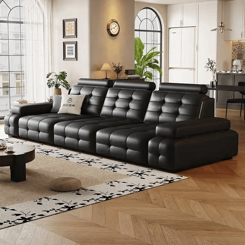 奢华触感与耐用性:法莎蒂沙发采用意大利进口头层牛皮,厚度达1.8mm,结实耐磨,亲肤舒适,每一次坐下都是奢华体验。
