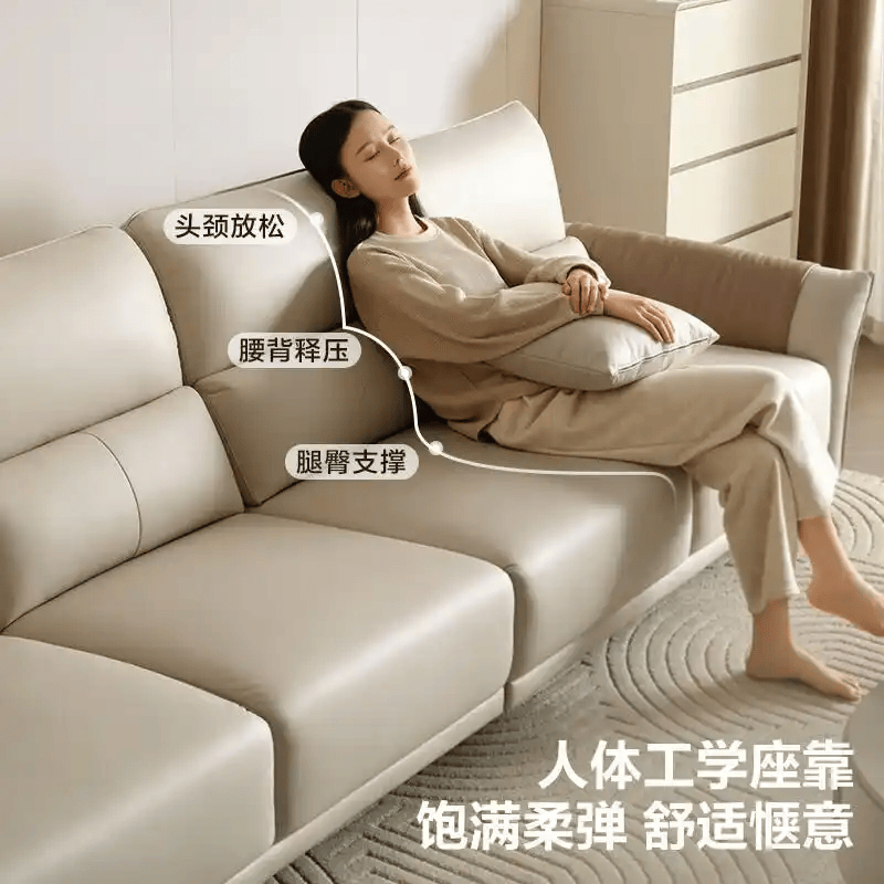 核心优势:采用优质头层牛皮与天然乳胶,打造出无与伦比的舒适体验,给您带来如云般的包裹感。