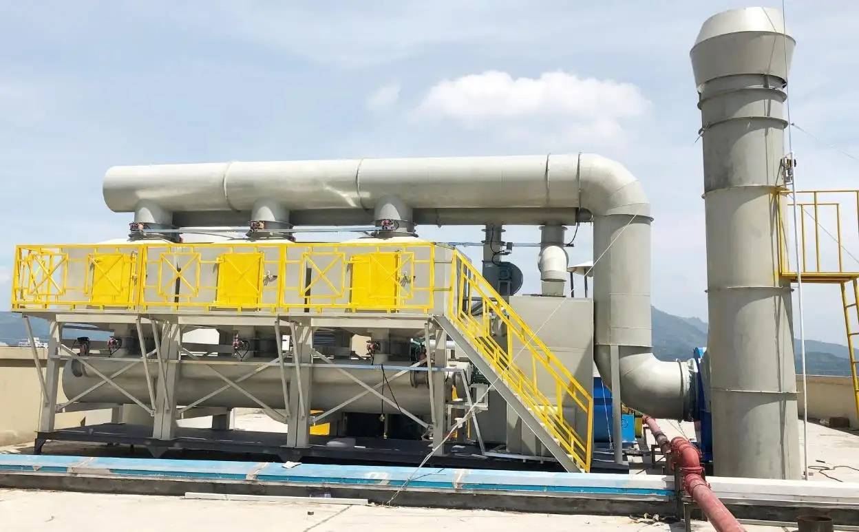 水喷淋洗涤塔利用水或其他液体吸收废气中可溶性VOCs和拦截颗粒物,净化后的气体再进入后续处理设备。