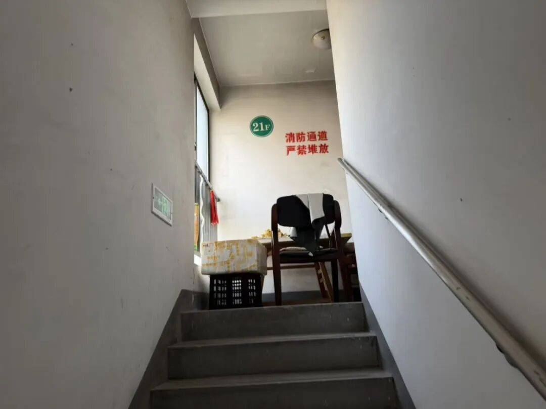 检查人员发现楼道内多处楼梯的转角处,不同程度地堆放着杂物。杂物种类多样,包括落满灰尘的床垫、小桌子、小推车等。更为严重的是,部分楼梯间内堆有纸箱等易燃物品,安全隐患极大。此外,楼道安全出口门前堆放物品、快递,不仅占用公共空间,更严重阻碍了逃生与救援通道的畅通。