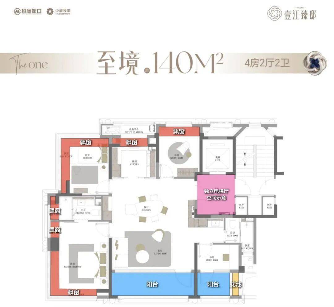 双阳台+多飘窗+花池+独立电梯厅将户型实得率提升到90%+。