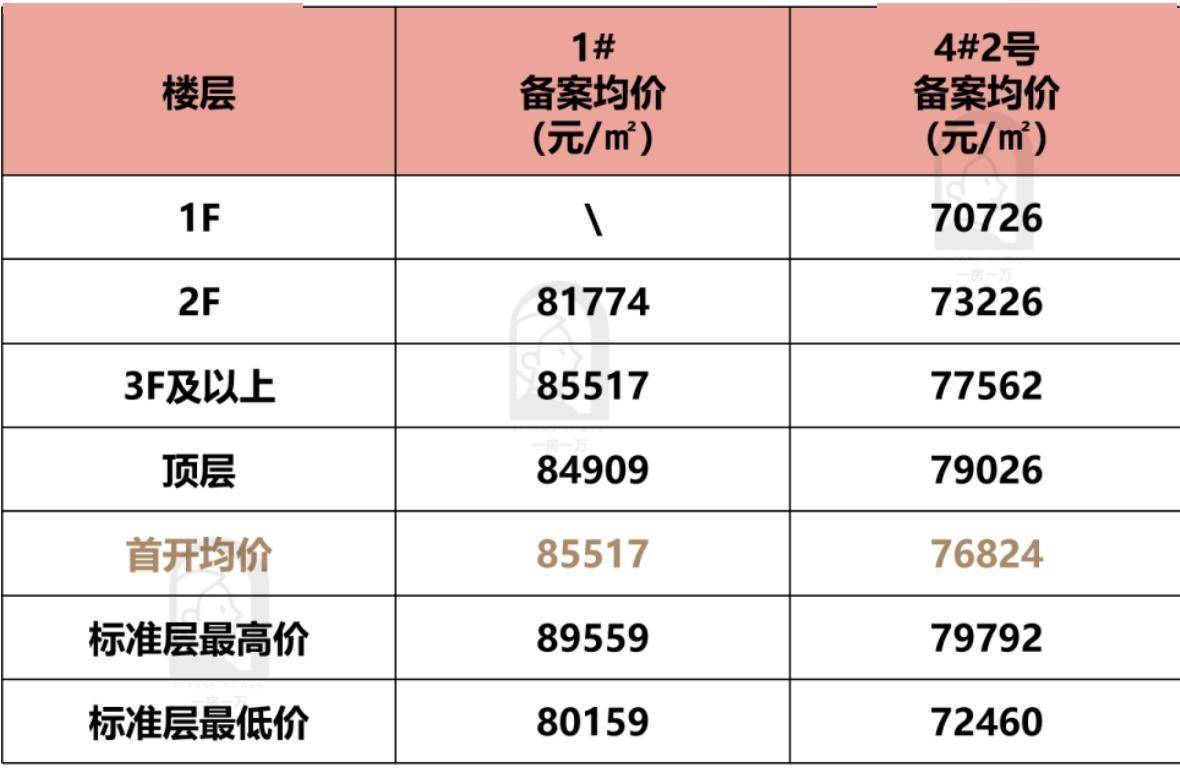 据一房一价表显示,1#整体备案均价达85517元/㎡,成为本次首开的价值核心。