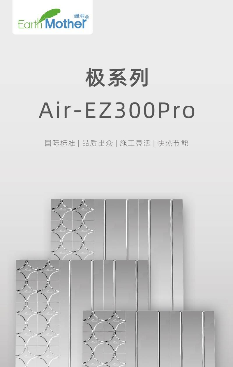 绿羽干式地暖轻铝板EZ300PRO是出口欧洲、日韩、北美等地区的干式地暖材料,通过了严格的品质检测,符合欧盟及相关国家进口标准。其铝层厚度达到0.3mm,能保证地面传热速度以及热量均匀度,使用100%全新料制成的白晶板为保温层,足厚3cm,抗压强度高,升温快、省层高。