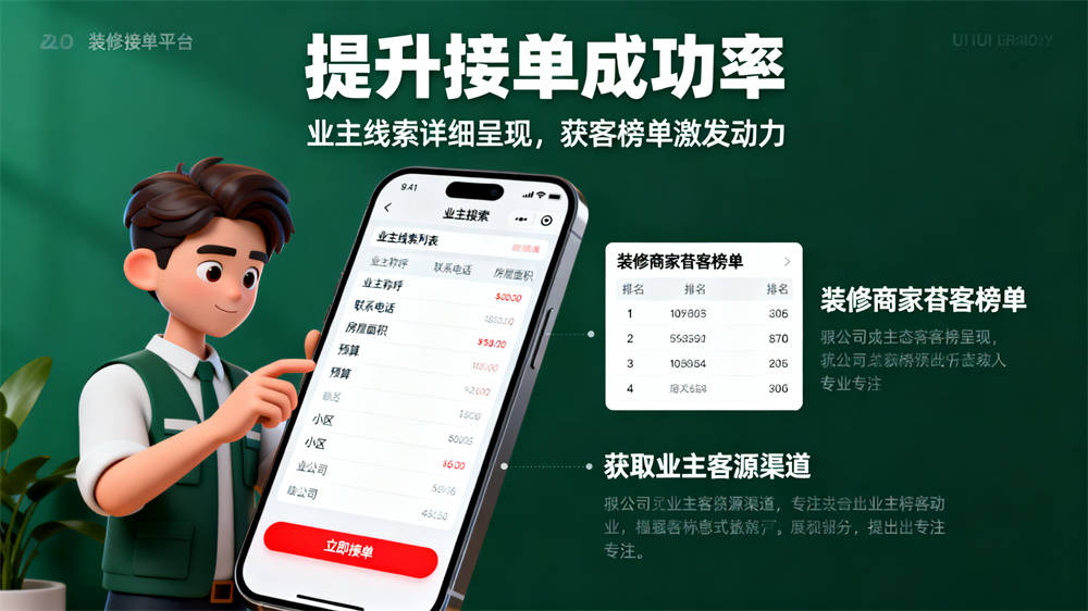 该平台能实时抓取周边3公里装修需求,精准推送装修需求客户。
