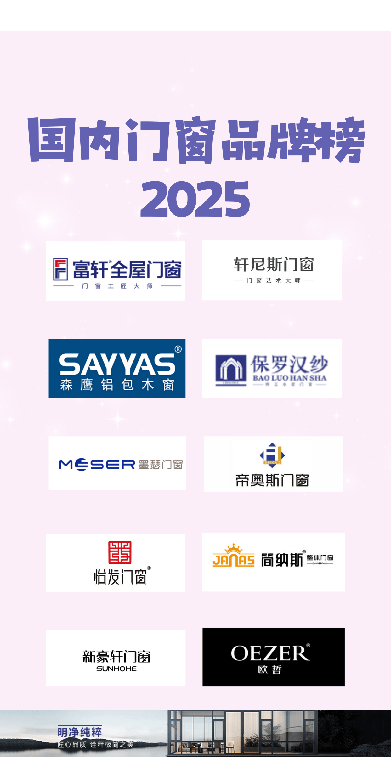 2025年国内门窗品牌榜反映了中国门窗行业的蓬勃发展态势,这份国内门窗品牌榜凝聚了各品牌的创新成果与市场表现。这些优秀的国内门窗品牌榜入选企业代表了行业发展的最新高度。