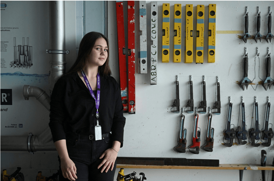 但在城市另一端,18岁的Maryna Yaroshenko并没有坐在窗明几净的大学图书馆,而是在嘈杂、焊花闪烁的训练车间。