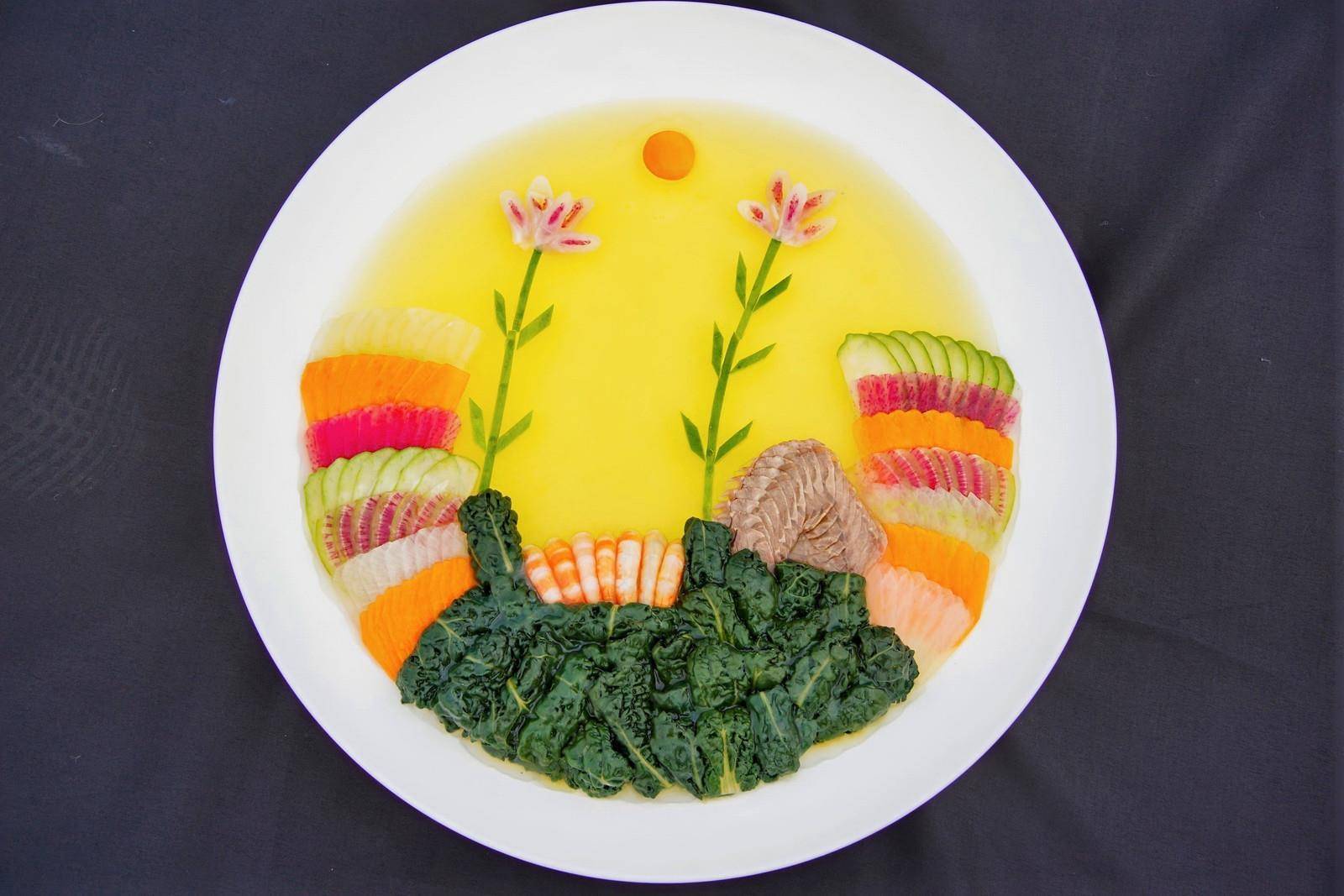 活动现场,随州籍中国烹饪大师王海东为在场的观众端出了一桌极具创意的“泡泡青宴”。