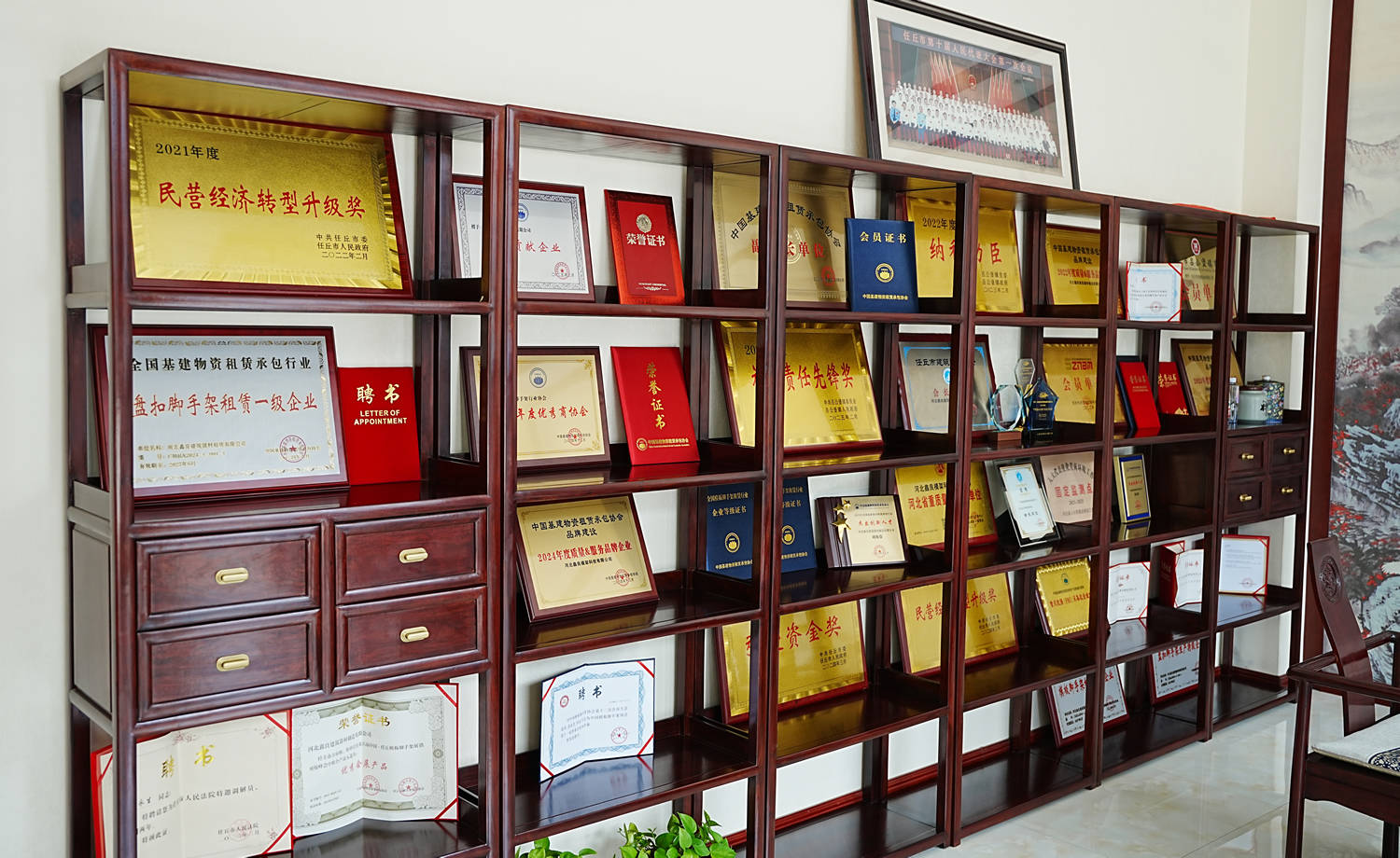公司以技术和管理双轮驱动,屡获国家与行业权威认可:自2013年起,陆续成为中国基建物资租赁承包协会常务理事单位、任丘市脚手架行业协会会长单位,并获得中国质量服务信誉AAAA级品牌企业企业信用评价AAA级信用企业中国盘扣脚手架影响力品牌供应商等重要资质,体现了公司在行业中的地位与公信力。