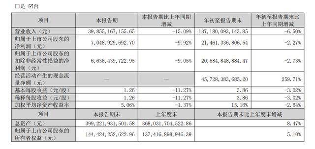 业绩方面,今年前三季度,格力电器实现营收1371.8亿元,同比下降6.5%;归属于上市公司股东的 净利润214.61亿元,同比下降2.27%。