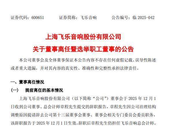12月2日,飞乐音响(600651.SH)发布发布公告,宣布一项董事会人事变动。
