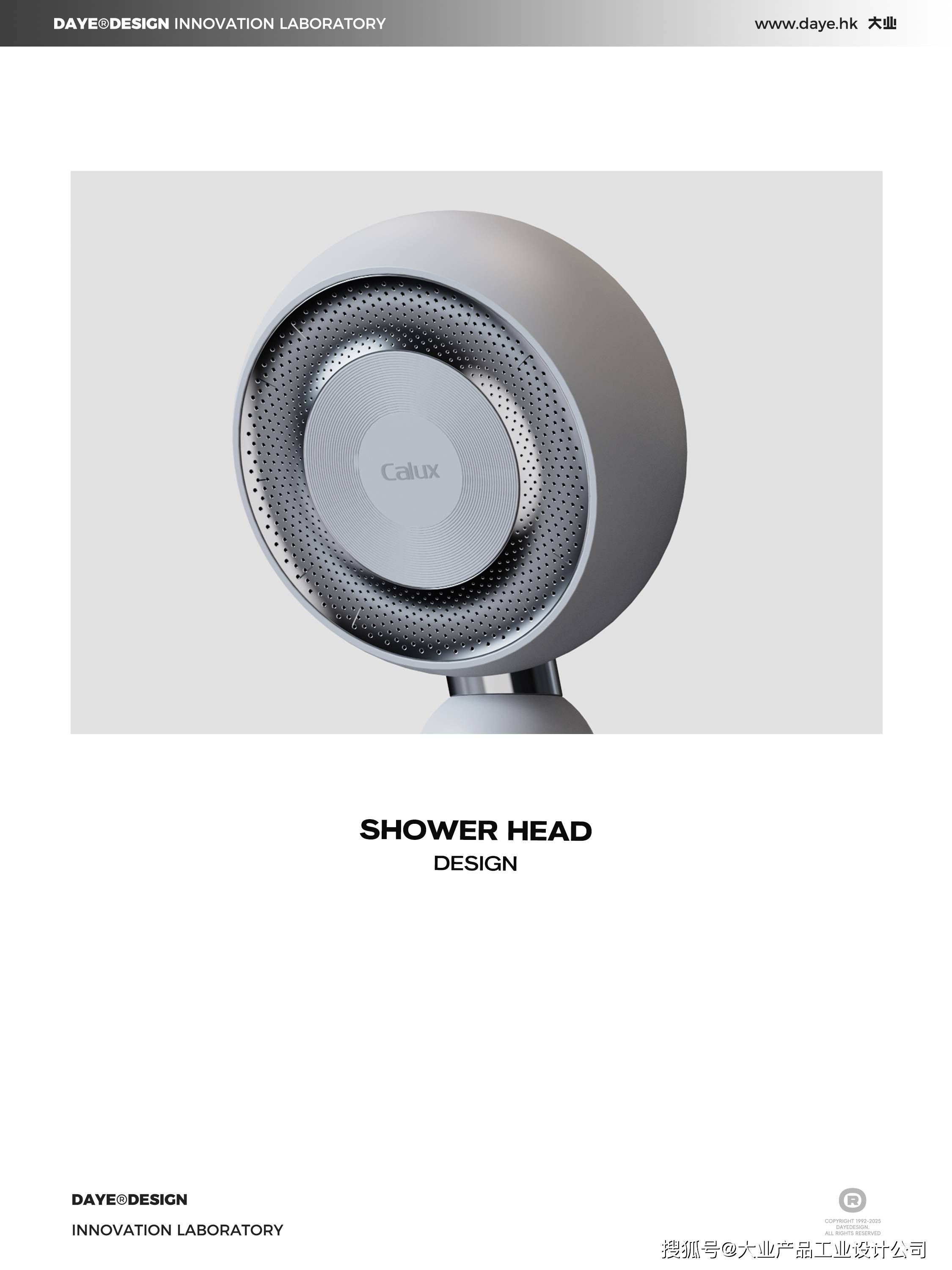 整体遵循无棱角圆润造型,花洒头的环形设计既符合水幕扩散的功能逻辑,又通过几何的形态语言消解卫浴工具的生硬感;手柄的流线弧度贴合手掌握持曲线,搭配底部的凹凸纹理设计,既保障了淋浴时的握持稳定性(水渍环境下防滑),又让外观具备触觉美学 的实用价值。