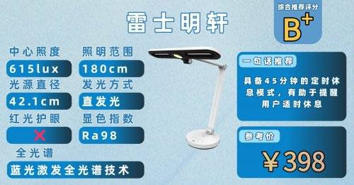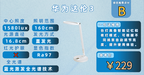 上榜理由:显色达到了Ra97,色彩还原度不错,而且多档色温能适配不同场景,日常学习够用。