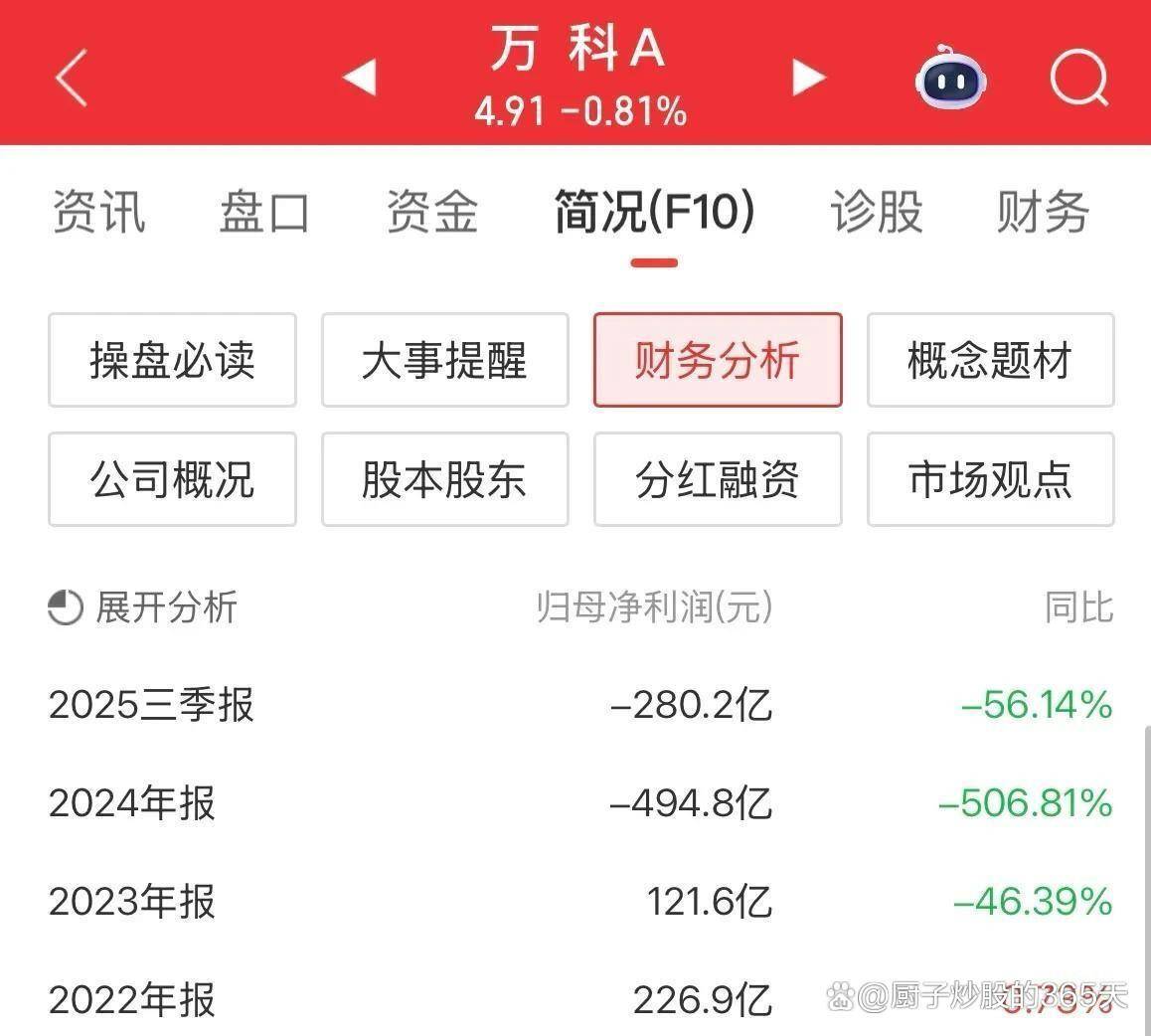 财务数据揭示了万科面临的严峻局面。