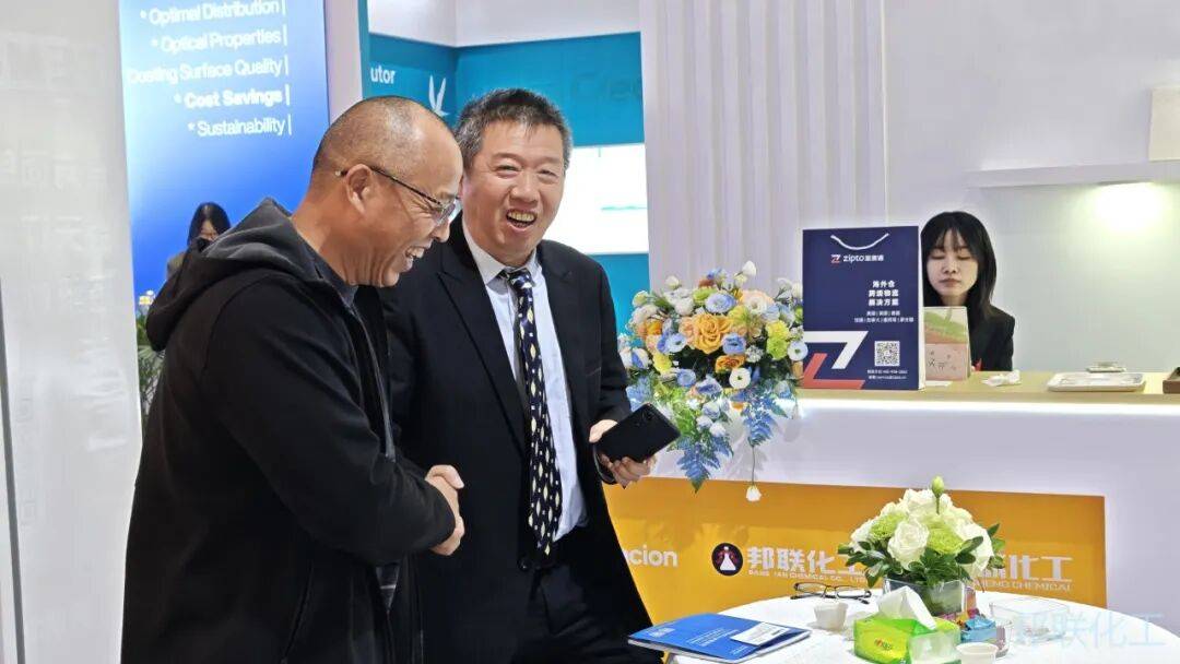 此次展会的一个大亮点是海外客户明显增多—— 海外客户驻足邦联展台,主动围绕产品性能适配、区域市场、供应链协同等话题展开深入交流。本次邦联化工特邀知名跨境供应链百强企业“至美通”联合参展——这正是邦联同全球客户共同拓展全球化网络的具体落地。邦联化工以拓展全球市场为远期目标,致力成为一家具备全球服务能力的企业。通过本次展会,我们也更加明确了未来跨境之路的方向,也更希望以此为契机,为客户精准匹配海外需求,提供适配当地政策以及终端应用场景服务支持。