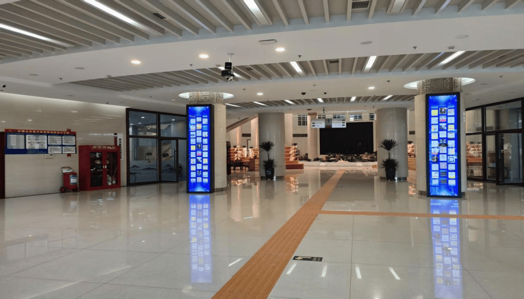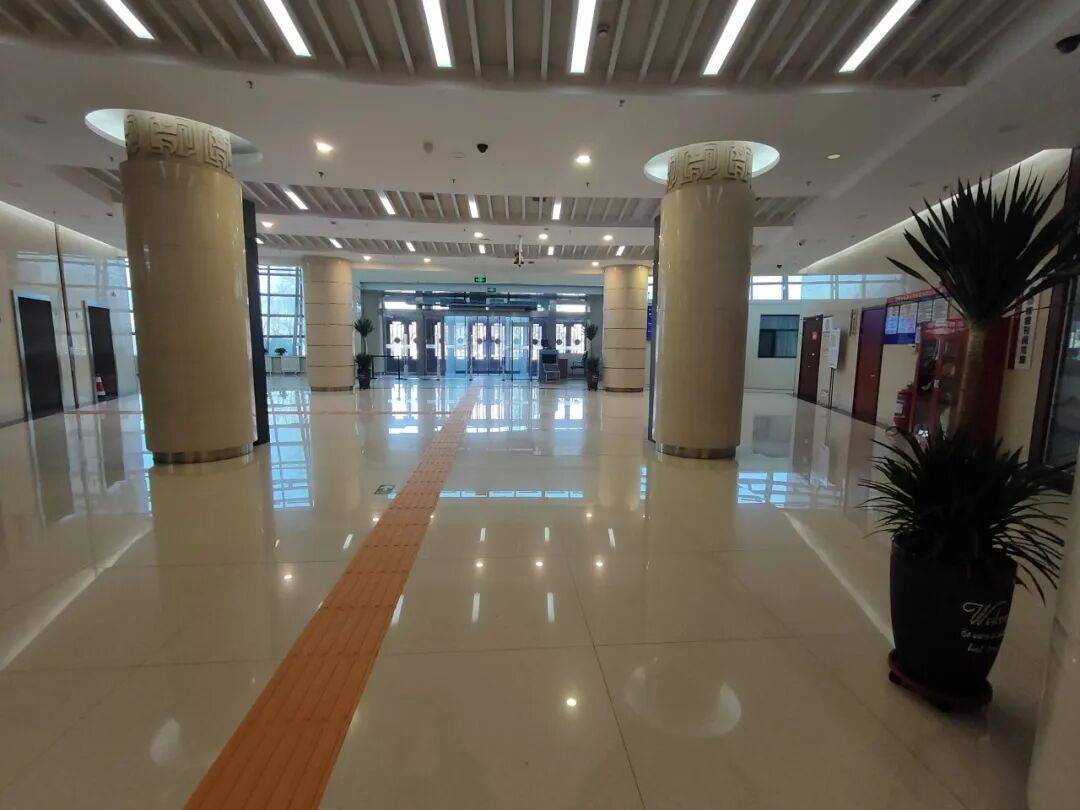 一楼门户区域铺设标准化盲道,衔接无障碍电梯与洗手间