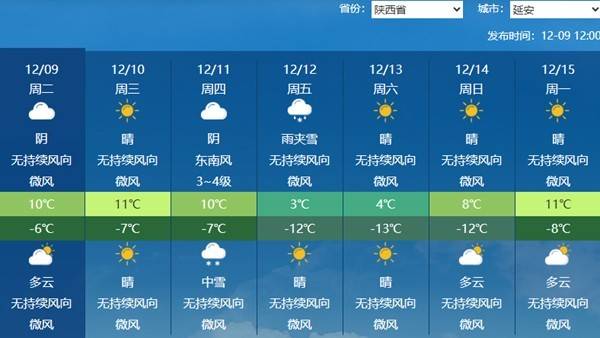 明天夜间至后天白天,陕北、关中西部、陕南西部晴天转多云,陕北东部局地有小雨转雨夹雪、汉中西部局地有小雨,关中东部、陕南东部多云间晴天。此外,陕北、商洛有4至5级偏南风,关中有 5至6级偏东风,阵风可达8级以上。