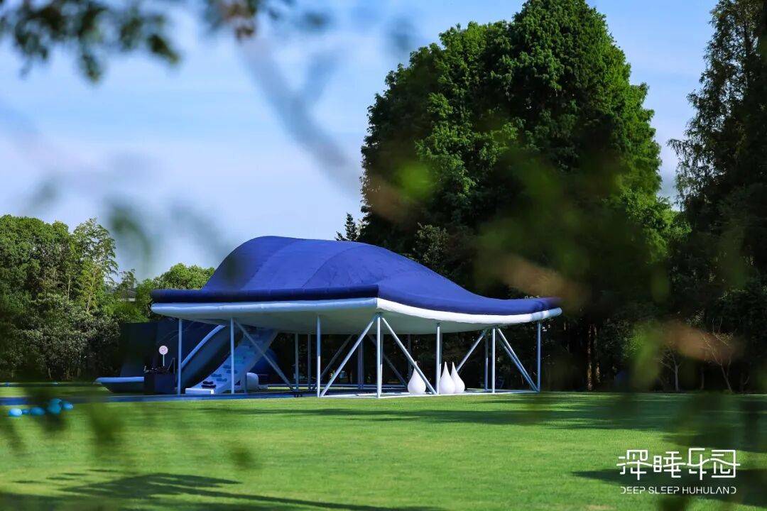 亚朵星球在线下打造的“深睡乐园”,用蹦蹦床、滑滑梯、拉链小火车、亲肤吊床、海绵迷宫等装置将新产品的核心设计具像化。(图片左右)