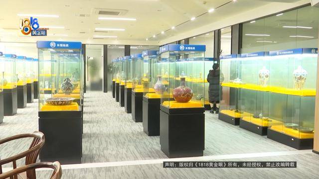 公司里有不少展柜放着瓷器、钱币等