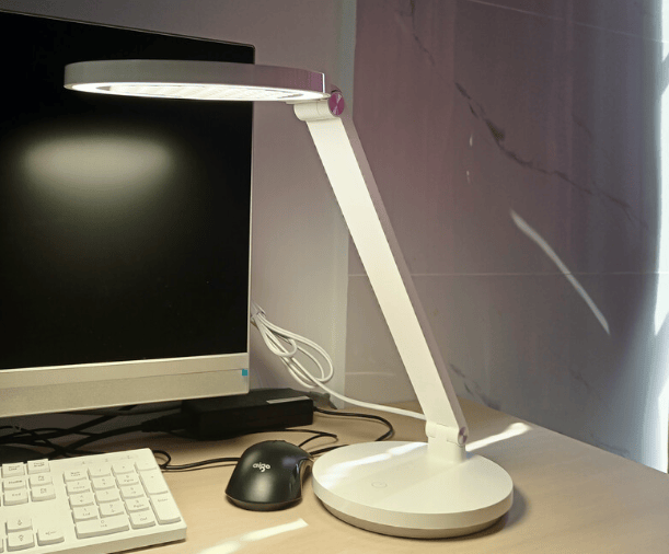 孩子护眼灯什么品牌好?良亮4308护眼台灯具备广泛的照明范围和多功能性。它采用侧发光方式,中心照度达到903lux,照明范围覆盖180cm,适合较大的桌面使用。光源面直径为20.5cm,结合铝合金与ABS材质,不仅坚固耐用,还提升了整体质感。