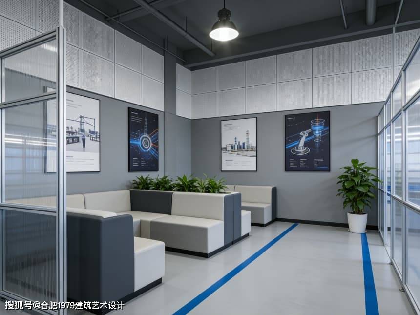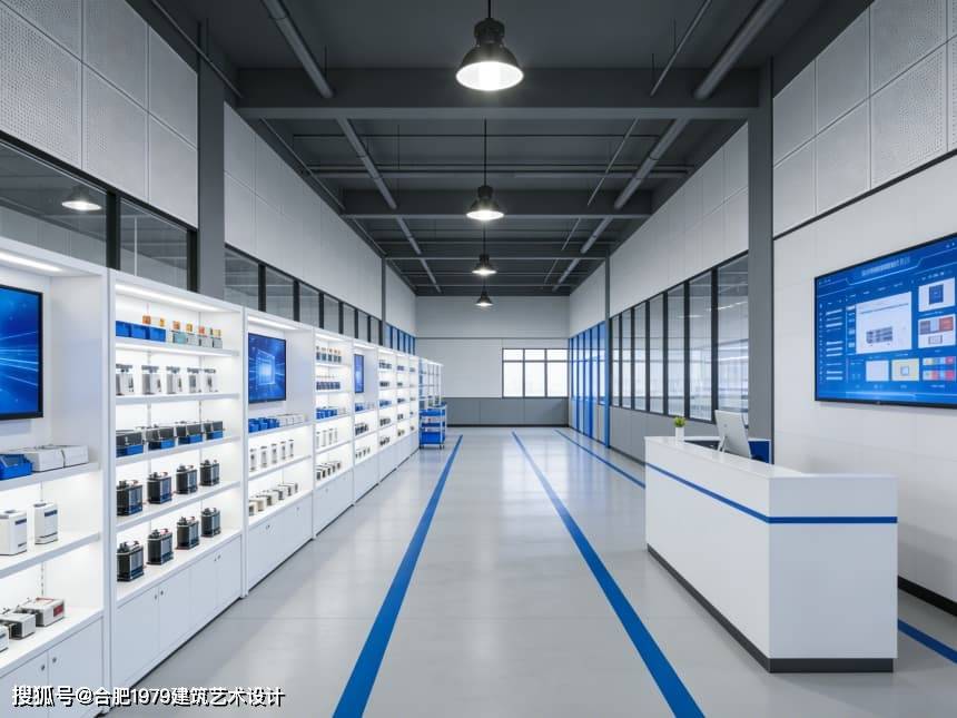 整体以工业灰为主色调,搭配局部科技蓝点缀,材质选用耐磨耐腐蚀的工业板材、防滑地砖,墙面局部嵌入管线造型与配网技术图谱装饰。各空间通过简洁隔断自然衔接,动线规划高效便捷,既保障生产研发的有序推进,又兼顾销售洽谈的商务格调,实现工业实用属性与现代设计美学的精准融合。