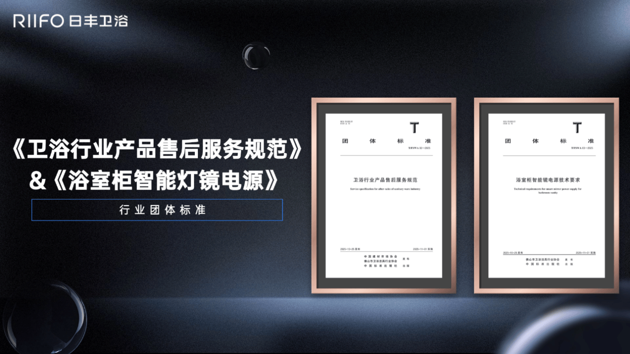 同时作为参编《2025卫浴行业发展白皮书》单位与被授予《卫浴行业产品售后服务规范》《浴室柜智能灯镜电源》两大团体标准。