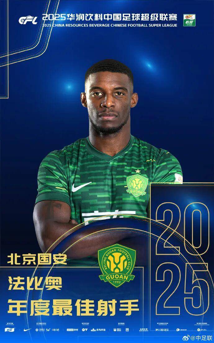 前锋:法比奥(北京国安)、莱昂纳多(上海海港)、费利佩(成都蓉城)