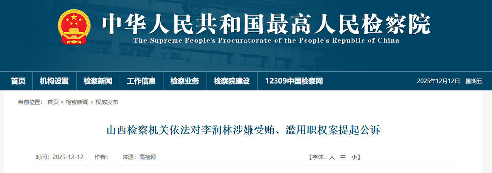 据高检网12月12日消息,日前,山西省吕梁市人民政府原副市长李润林(副厅级)涉嫌受贿罪、滥用职权罪一案,由山西省监察委员会调查终结,移送检察机关审查起诉。经山西省人民检察院指定管辖,由太原市人民检察院依法向太原市中级人民法院提起公诉。案件正在进一步办理中。