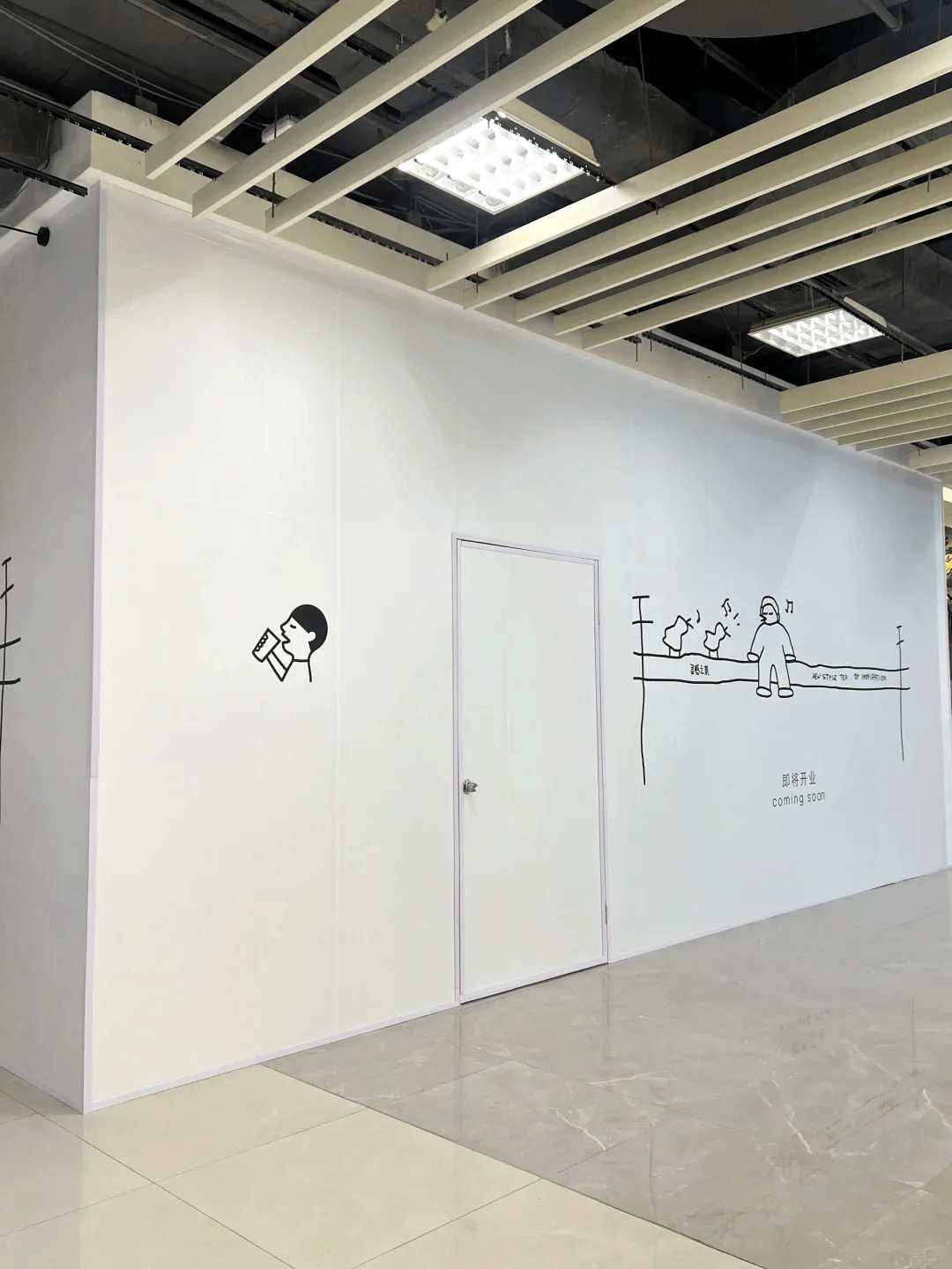 后脚香港新店直接玩起反差梗,围挡先写 “coming soon”,转头划掉改成 “slowly”,配上半死不活的插画,精准戳中当代年轻人的精神状态,一种活人微死的感觉。