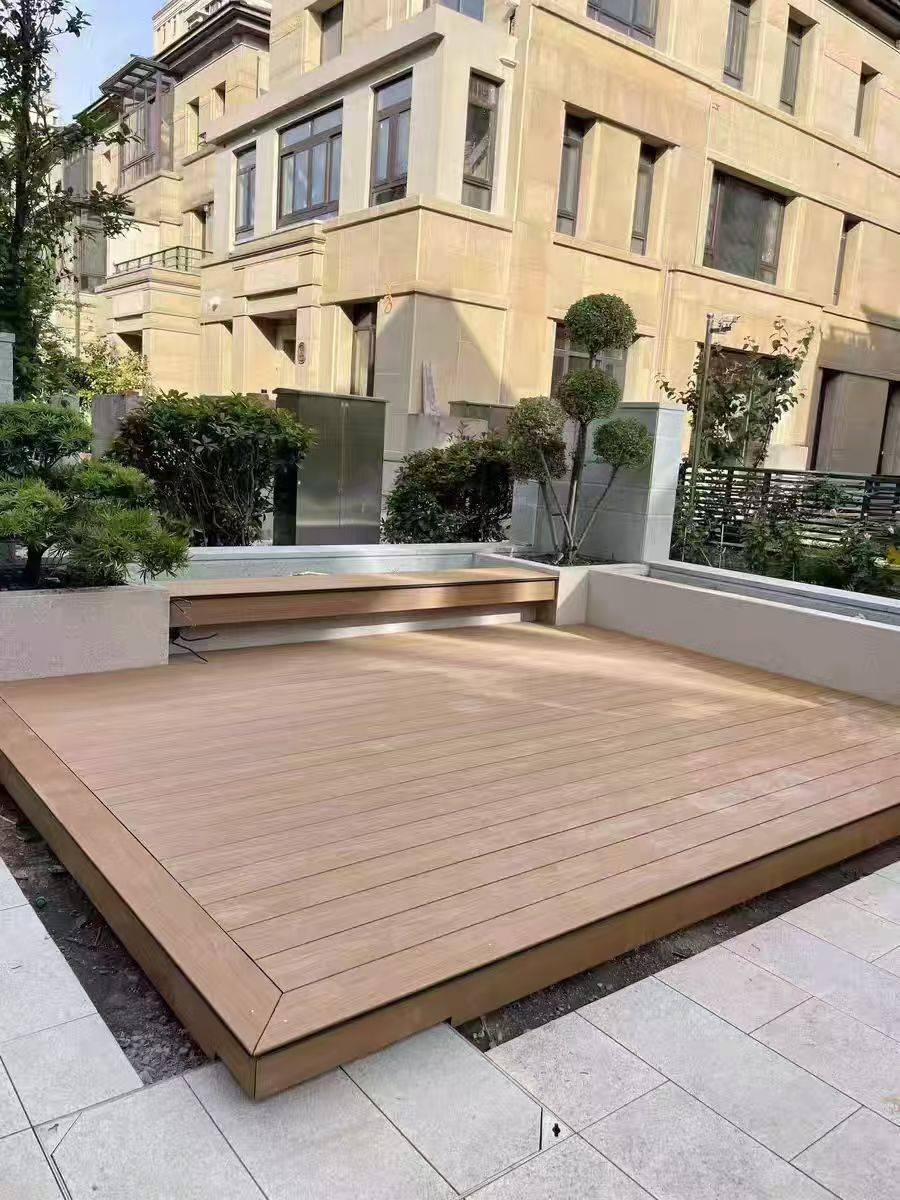 从我们过往的防腐木地板工程经验来看,学校和幼儿园更适合选择表面具备防滑纹理的塑木地板。这种处理方式既能有效提升摩擦力,又不会过于粗糙,避免对孩子皮肤造成刮伤。