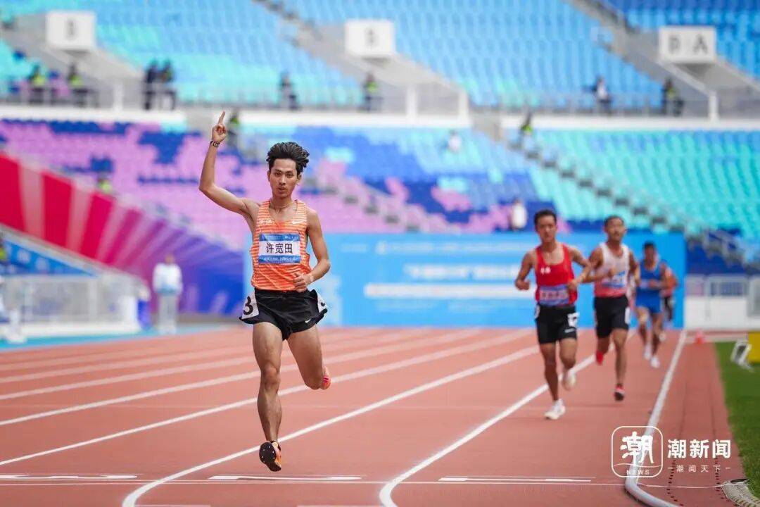 许宽田在男子5000米听障组决赛中率先冲过终点