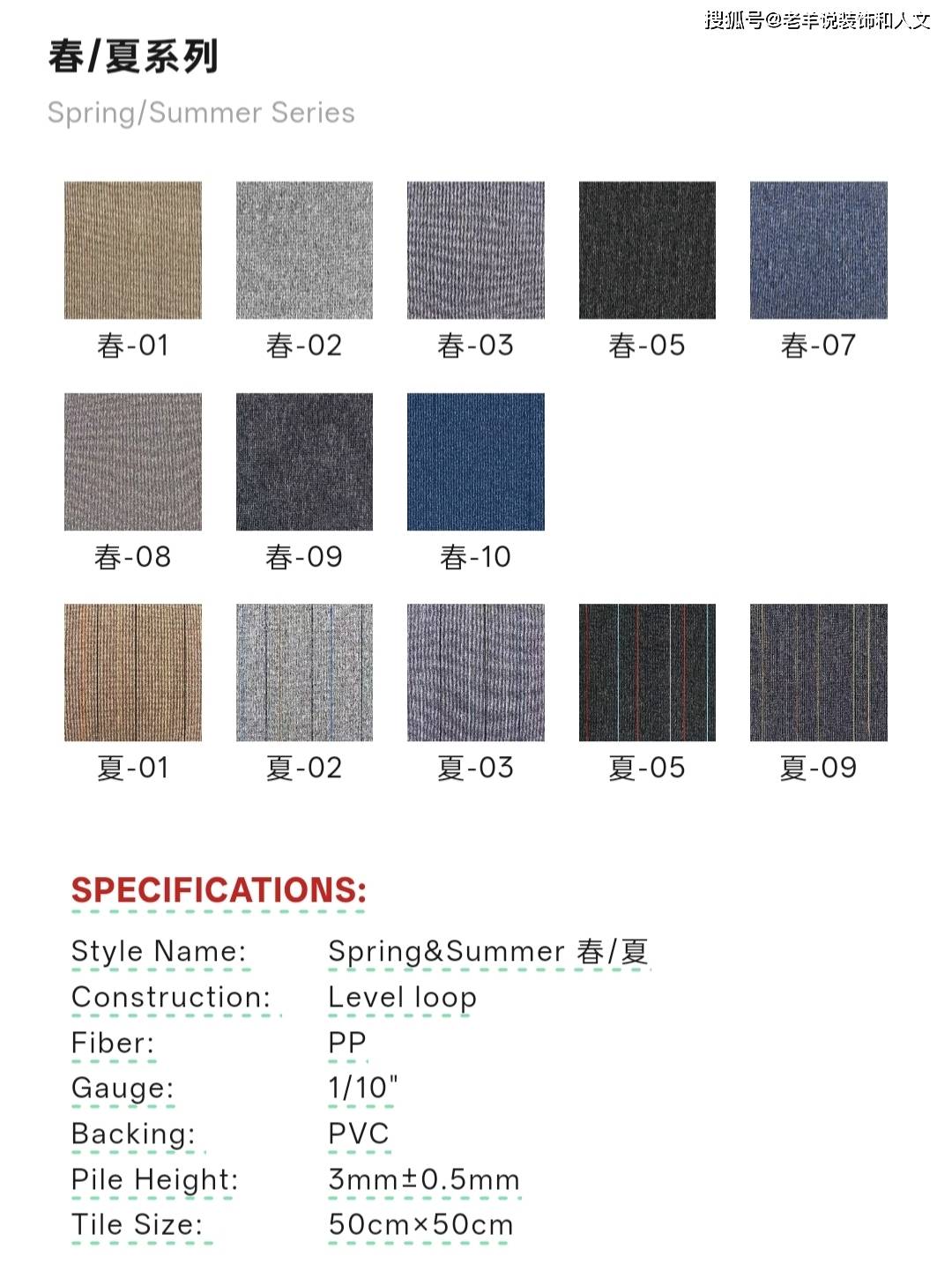 该系列地毯规格是50x50的经典尺寸,全系有8种经典配色,主打灰、蓝、棕办公主色。