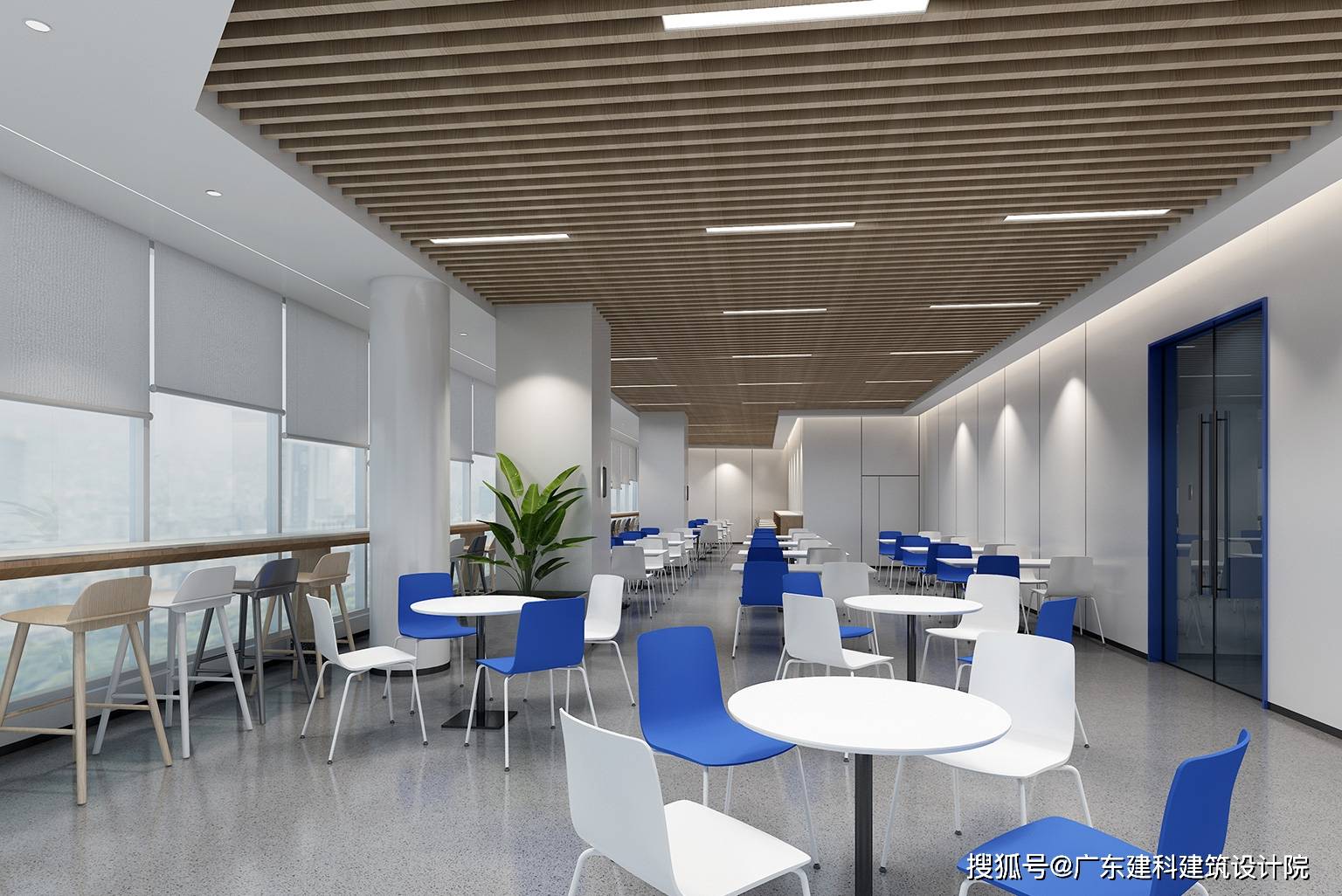 这里不是刻板的格子间,而是科技公司的灵感发电站。裸露的管线是理性的注脚,利落的灯轨织就光影韵律,冷调水泥地承托着高效节奏;而那抹撞色蓝,则是藏在秩序里的创造力开关:储物格化身知识充电站,绿植在硬朗线条里洇出呼吸感,通透窗景让思维随时与城市同频。