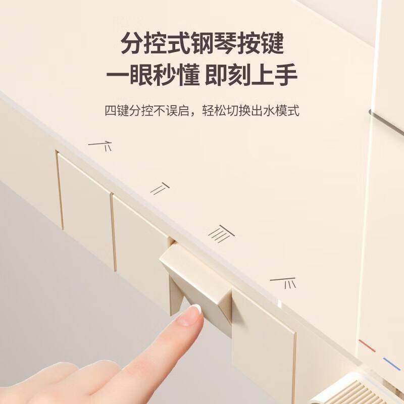 不同于普通旋钮式开关,其钢琴键设计不仅美观大方,操作也更加精准。每个按键对应不同出水模式,轻轻一按即可切换,老人小孩都能轻松掌握。