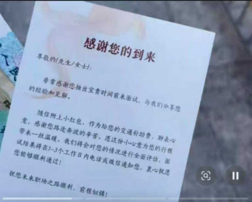 我面试了很多家公司,有的甚至是已读不回,所以遇见这样暖心的企业,也希望被大家看到。对于刚毕业的大学生来说,公司给的不仅是一份补贴,也是看到了求职者的艰辛。我发贴后看见网友的评论,感到特别暖心,昨天回复评论到半夜两点。