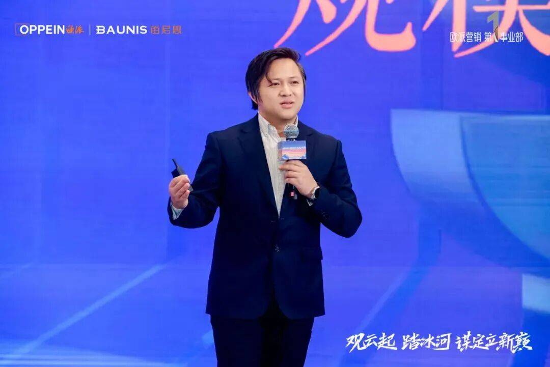 承接杨总对战略升维的解析,欧派营销第一事业部副总经理郭猛 对2026年整装大家居经营战略作出进一步深化的规划。郭总分享道,消费者对美好品质家居生活的向往是不会变的,要从经营的洪流中突围而出,需要全体装企经销商伙伴携手欧派并通过战略效率、产品效率、执行效率三大维度,协同共创提升客户体验和经营效能,同心共振方能穿越周期共赴整装大家居新未来。