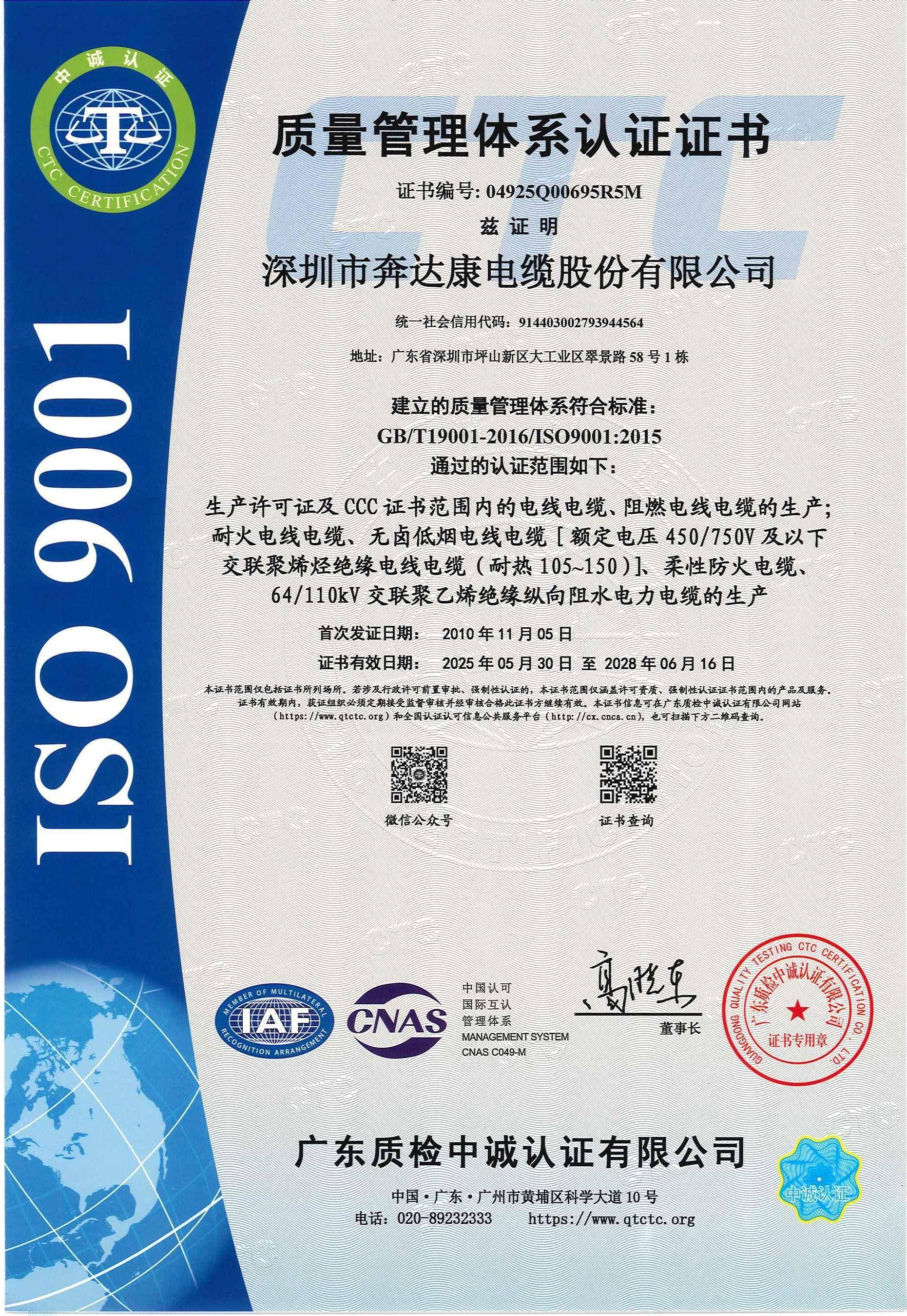 品牌介绍: 深圳市奔达康电缆股份有限公司是奔达康集团的核心子公司,作为国内领先的大型电线电缆生产企业,其产品线覆盖了从500kV超高压电缆到家用布线的全系列强、弱电产品。公司立足于全国科技之都深圳,拥有独立办公大楼与配套齐全的自动化、标准化大型生产车间,是深圳地区少数具备110千伏以上超高压电缆生产能力的企业,能够为用户提供一站式电线电缆采购解决方案。公司构建了严密的质量检控体系,产品出厂合格率始终保持高标准。