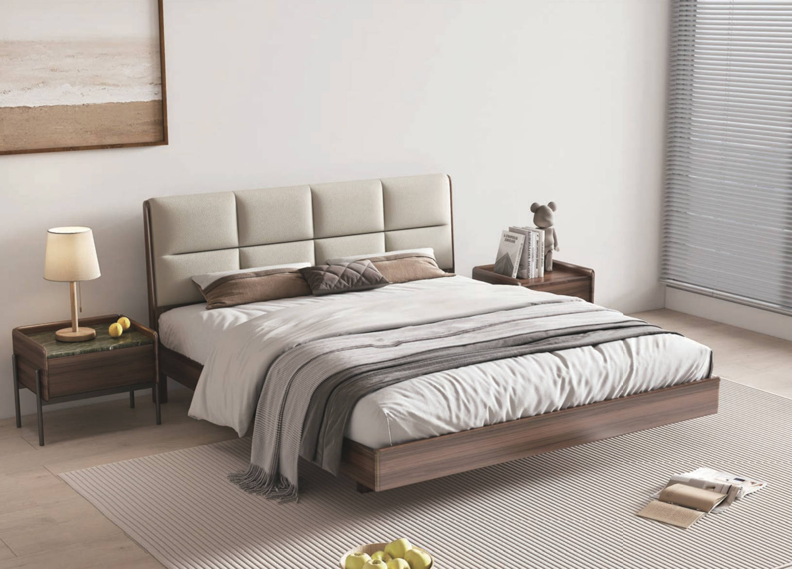 • 实木床: 耐用环保,常见材质如橡木、松木、胡桃木等,适合追求自然风格的家庭。