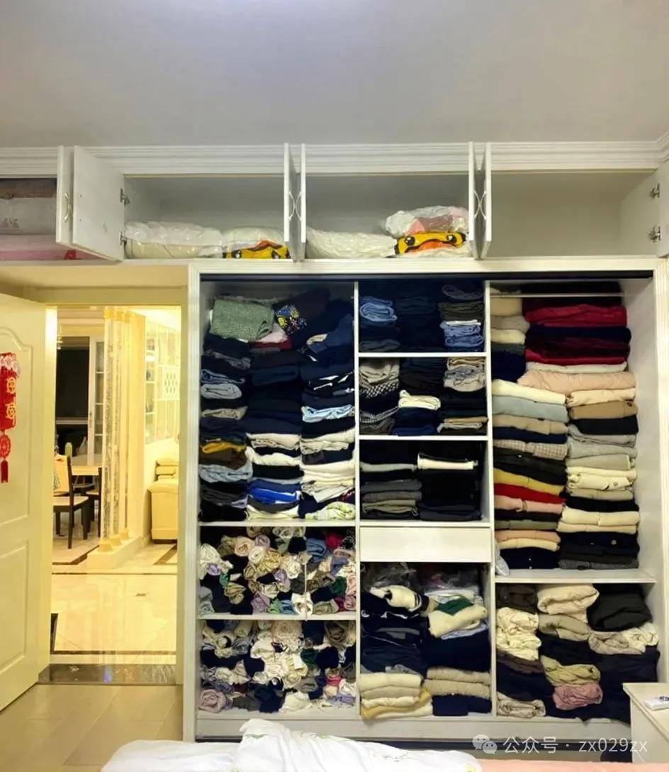 一旦大量衣物叠放,整体就会更混乱,不仅衣服褶皱无法穿,而且拿一件全部乱,这是最失败的衣柜做法。