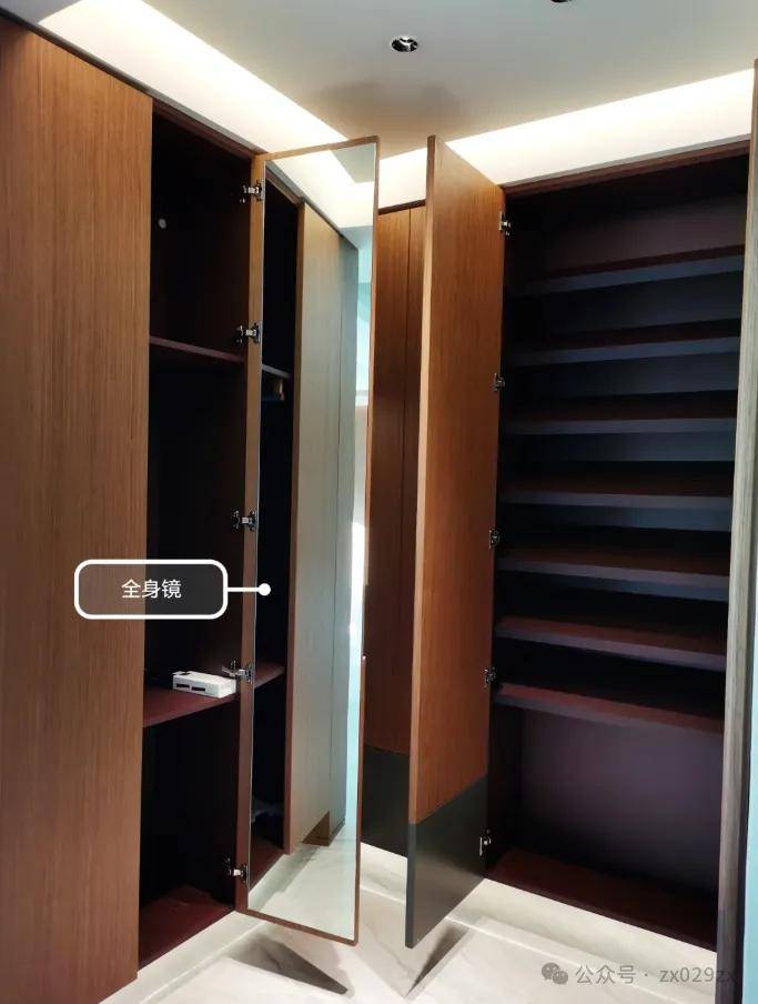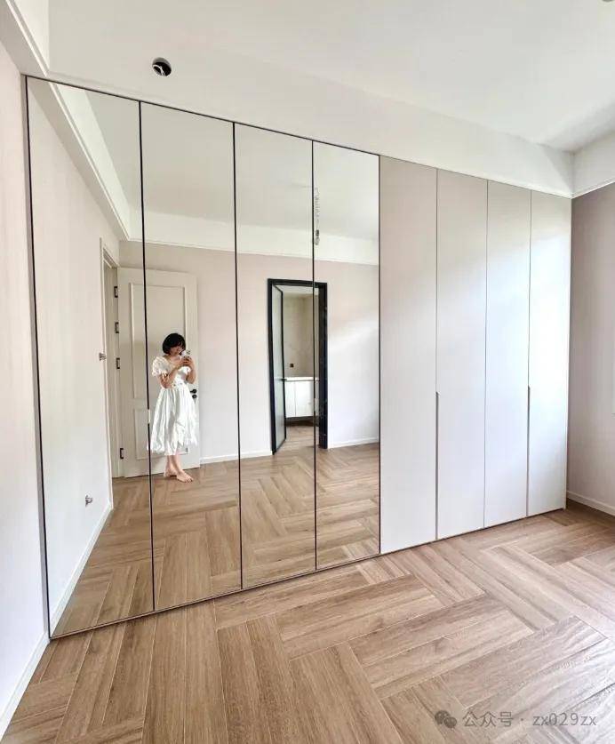 但卧室空间不能大面积镜子对着床,此时其实采用一扇高的柜门,内侧贴上镜子,既不占地方,而且还满足能照到全身「想放全身镜,这5种办法绝了,省空间到离谱,颜值直接飙升,安利给所有人」