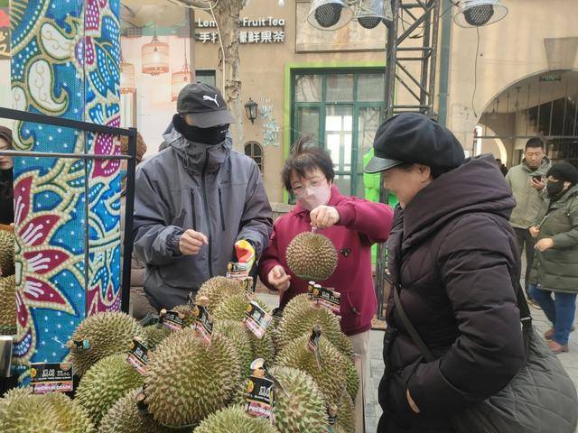 1月16日上午,首届RCEP马来西亚(青岛)榴梿节在大鲍岛文化休闲街区启幕,活动持续至1月18日。来自马来西亚的五大名种榴梿鲜果经过空运来到青岛,为岛城市民带来还原果园到舌尖的新鲜体验。“从马来西亚果园到青岛,只需要24个小时,比当地消费者吃上鲜果还要快一个小时。”马来西亚品牌来发记青岛榴梿主题餐厅主理人刘丽娜介绍。