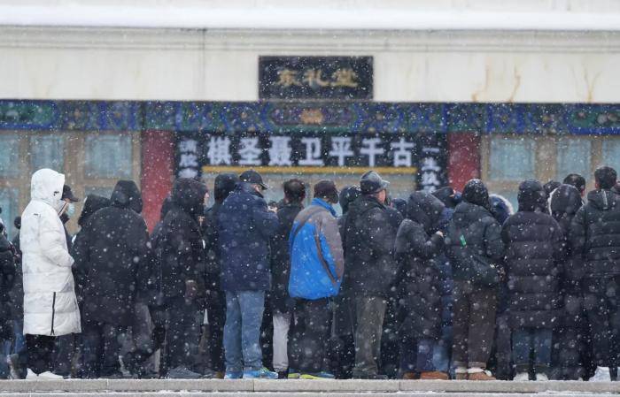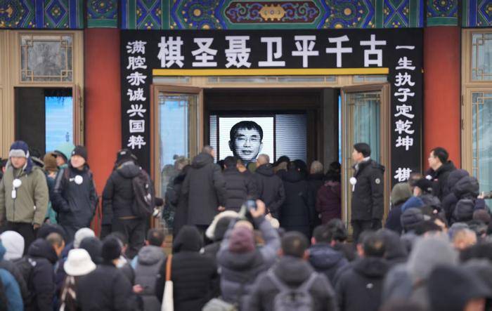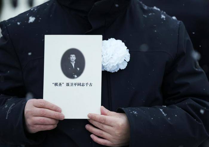 1月18日8点,人们冒雪送别聂卫平。北京八宝山殡仪馆东礼堂前,人们胸佩白花送别“棋圣”聂卫平。中国围棋协会名誉主席、“棋圣”聂卫平14日晚在北京病逝,享年73岁。