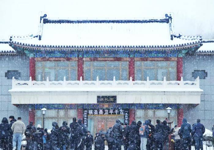 聂卫平遗体送别仪式1月18日8时,在北京市八宝山殡仪馆东礼堂举行。市民雪中送别。
