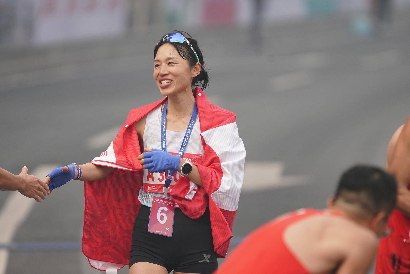 1月18日上午11点01分,重庆嘉陵江畔薄雾未散。张水华冲过终点线。她抬起左手看了一眼手表,高举双臂,向赛道两旁为她呐喊的观众致意,笑着接过写有数字“6”的名次卡。