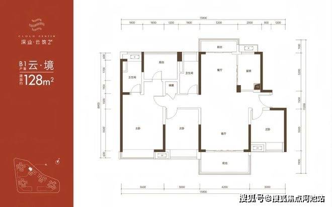 128㎡的4房2厅2卫,B1户型,仅5栋B单元的03号房才有,设计的是竖厅格局,南北通透双阳台,客厅4.2米开间,餐客厅一体化设计,4个卧室分别做到了主卧19.44㎡/次卧12.3㎡/次卧12㎡/次卧10.5㎡(含墙体飘窗),U型厨房,卫生间干湿分离,得房率:79.71%(不含赠送),大阳台主朝正南向。