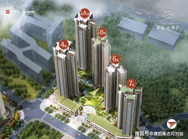 深业云筑2期,由深圳国企深业集团打造,总占地面积约1.85万㎡,总建筑面积约13.19万㎡,计容建筑面积约9.17万㎡,容积率4.84,绿化率40.27%,共由5栋总高32-33F高的住宅组成,其中除了6栋总高33F,其它栋数都是32F。