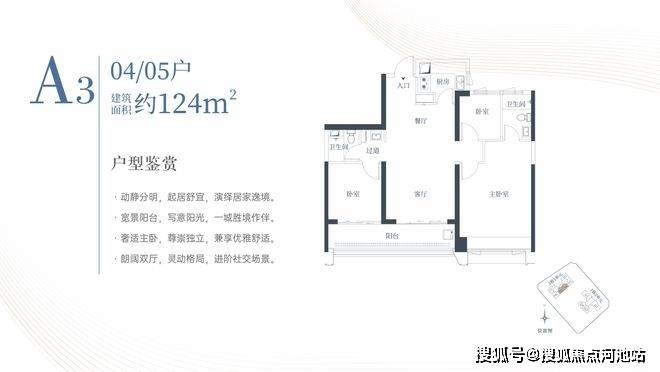 1栋一单元A3户型:面积约为124㎡