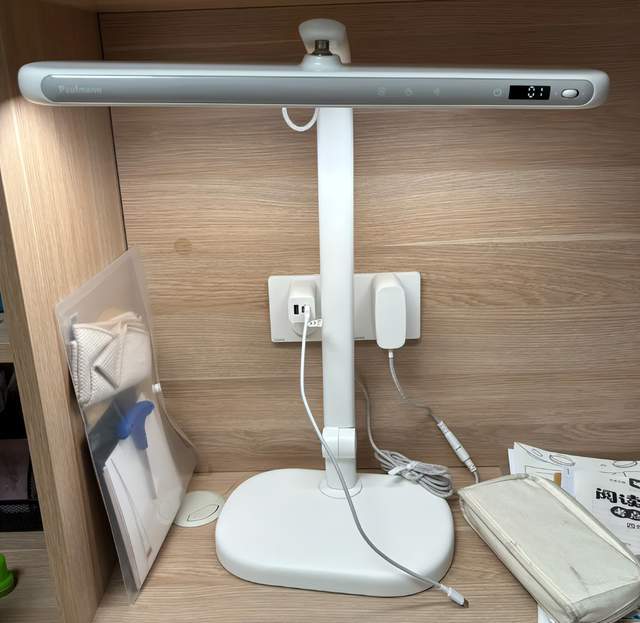 灯臂上还设有一个USB充电接口,可为手机等设备供电,增添了一些便利性。不过,也因为灯头部分集成了较多功能模块,重量也相对较大,在频繁或大幅度调整灯臂角度时,会容易出现轻微的晃动现象。总体来说这是一款使用便捷的护眼台灯,更适合预算充足的家庭考虑。