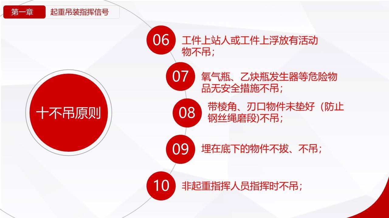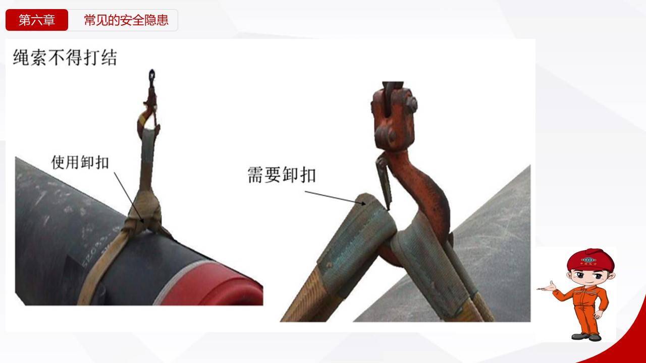 - 清工具:检查吊索、卸扣。发现磨损超10%、变形、裂纹,立即报废。